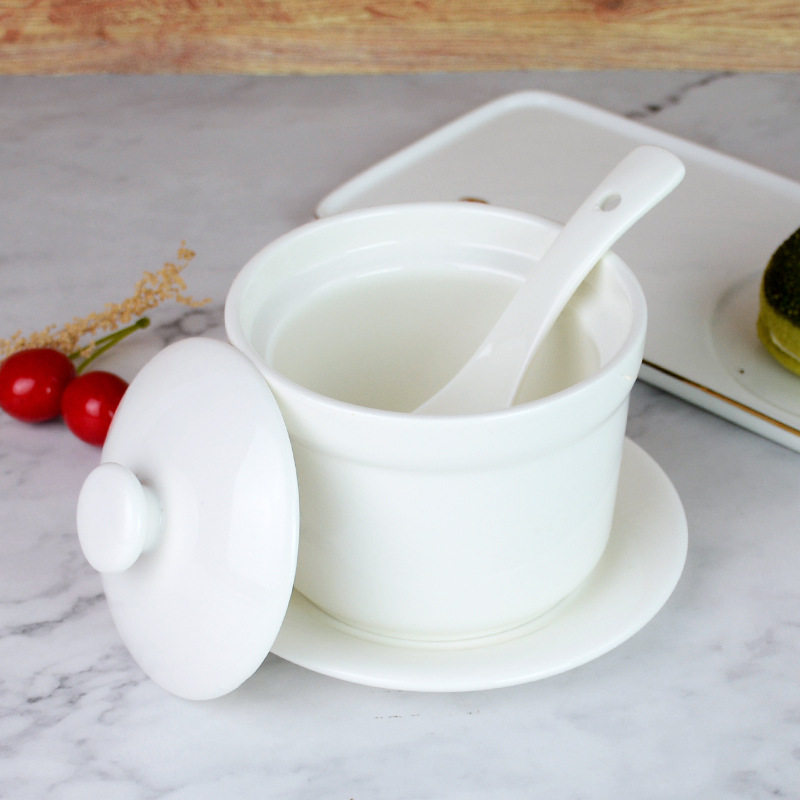 Household solid color water-repellent with lid soup cup stew cup delivery leak-proof special microwave soup bowl dessert bowl bird's nest delivery spoon