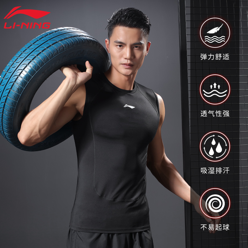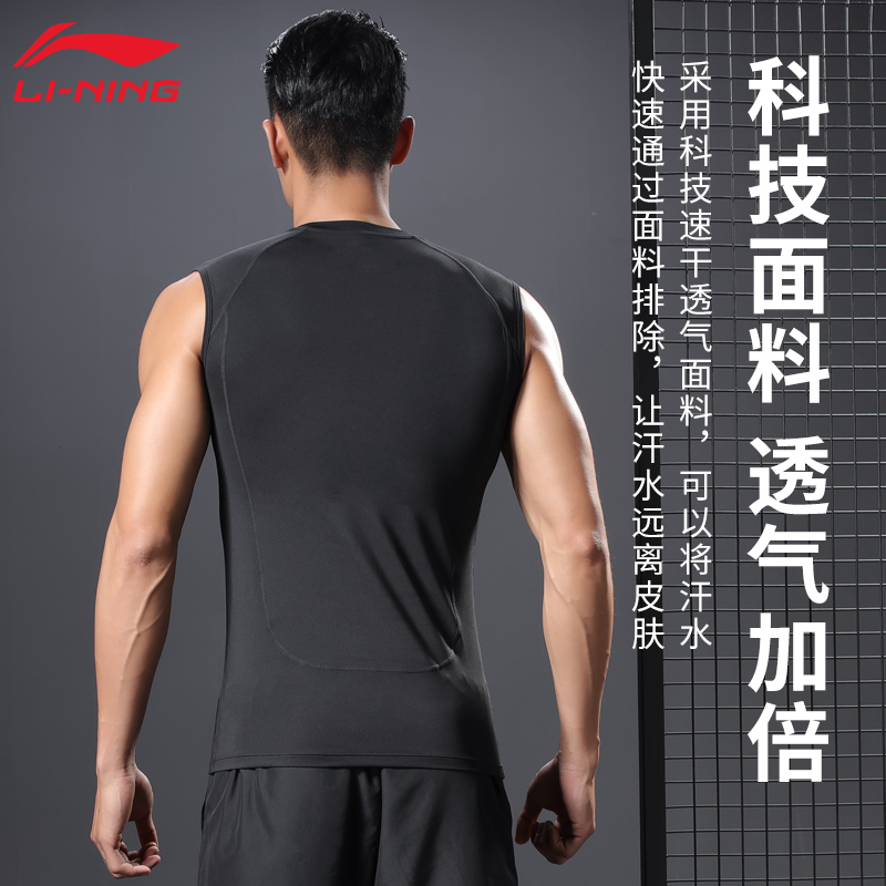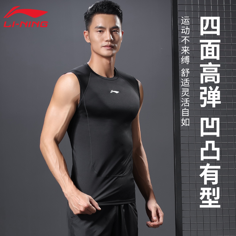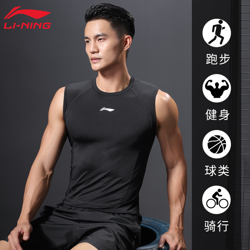 Li Ning Fitness Vest Men's Sleeveless T-shirt High-elastic tights Vest Quick-drying clothes Sports running basketball training clothes