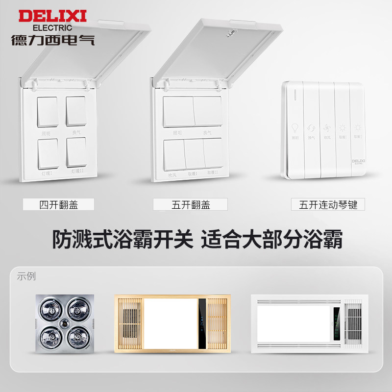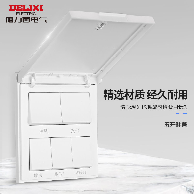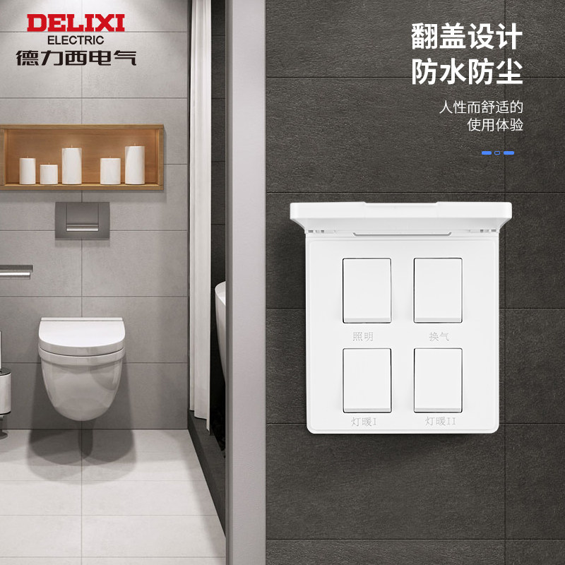 Delixi Bath Master Universal Switch Home Bath Bully Replace Switch Toilet Bathroom Four Open Five Open Switch Panel