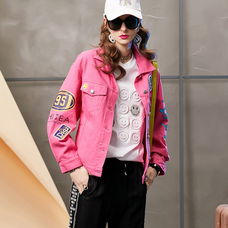 European station white denim jacket women's 2022 spring new heavy industry beaded loose small all-match top trendy
