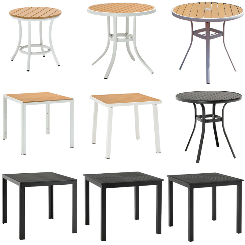 Outdoor table single table courtyard balcony table and chairs milk tea shop outside small round table anti-corrosion plastic wood solid wood table leisure