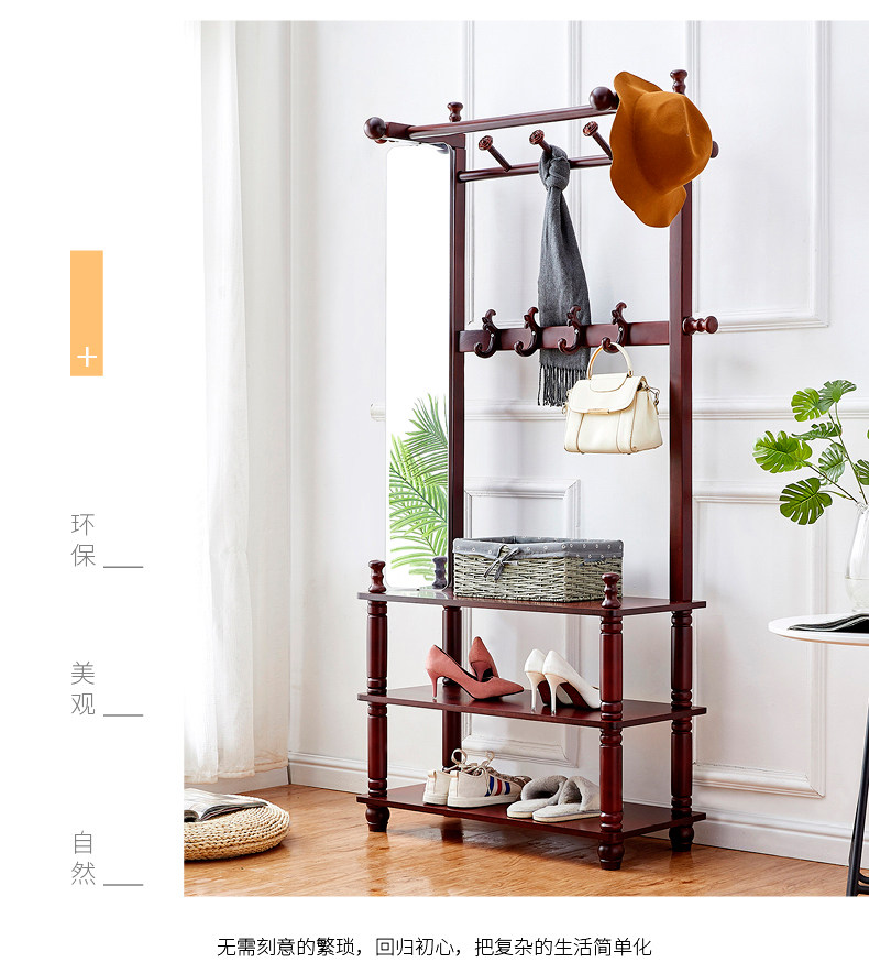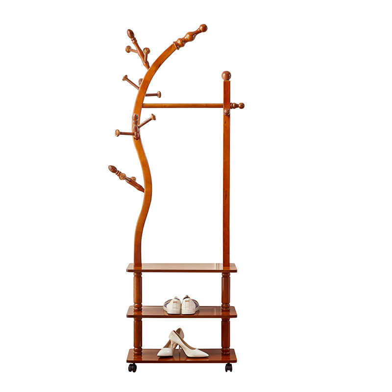 Branch creative solid wood coat rack Floor-to-ceiling bedroom multi-function hanger Hotel European-style multi-layer shelf with mirror