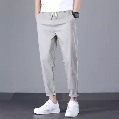 Summer casual pants men loose thin spring and autumn men's trend elastic sports ankle-length pants slim Harring pants men