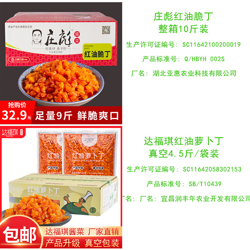 Zhuang Biao red oil crisp Ding net weight 9 catty red oil Roof radish Ding vacuum 1 bag 4 5 catty red oil Luo Carrot Ting Vacuum 2 Bags Total 9 catties