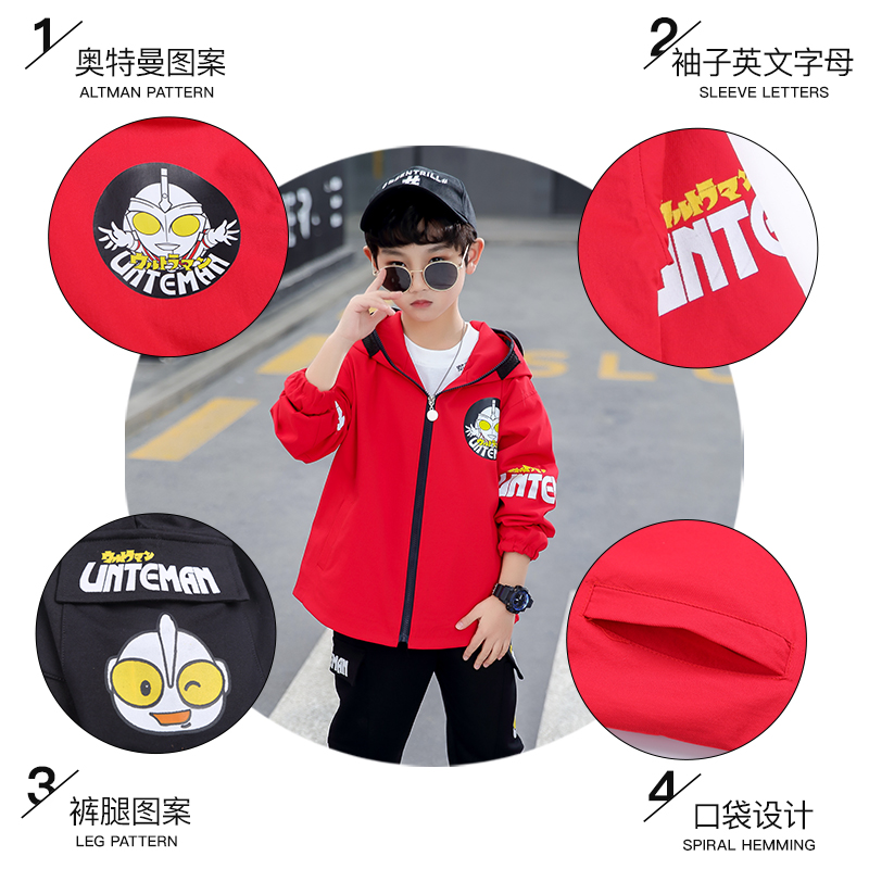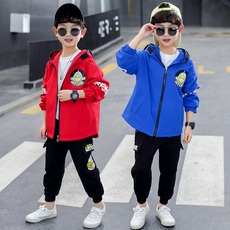 Children's jacket suit boys trend super handsome spring and autumn clothing 2022 new ultraman clothes children's clothing two-piece set