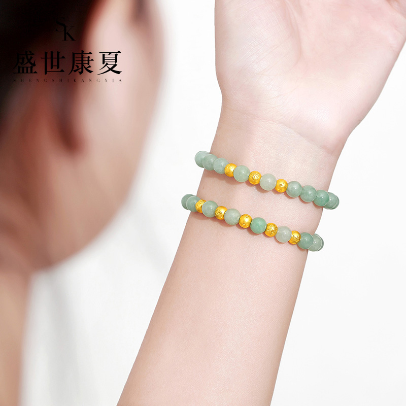 Gold transfer bead jade jade bracelet female pure gold 999 carved ball string jewelry to girlfriend