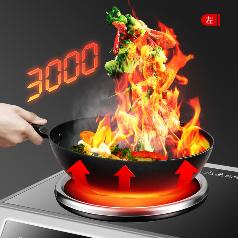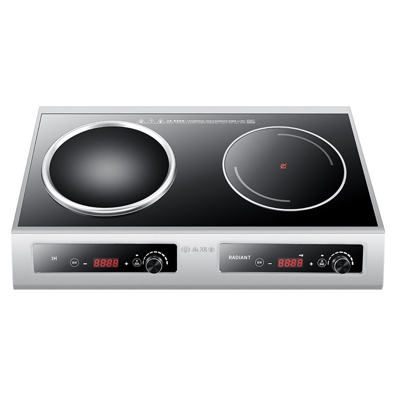 Shangpengtang 3500W high-power stir-fry household commercial concave bottom double-head desktop induction cooker black crystal furnace double-port gas furnace