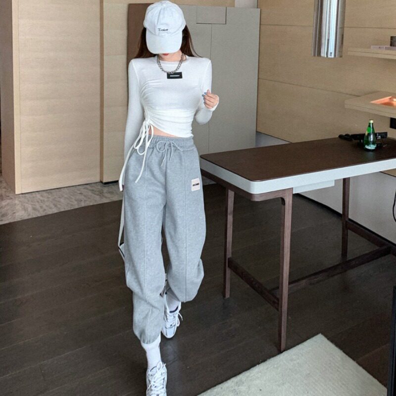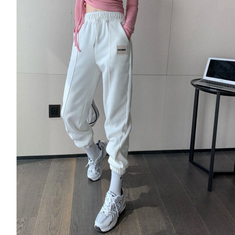 Vanya white pants female spring and autumn Han edition fashion air and lean sports leisure high waist beam foot tide