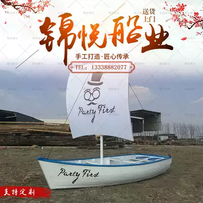 Props Wooden boat decoration wooden boat European-style antique Wu tent boat pointed landscape decoration wooden boat Outdoor sail flower boat