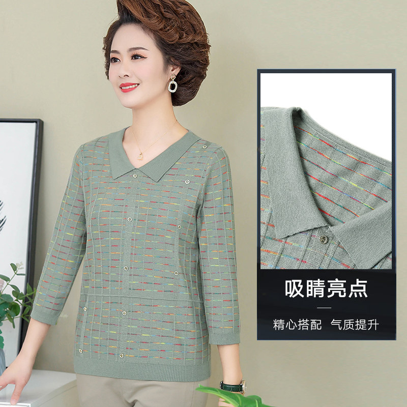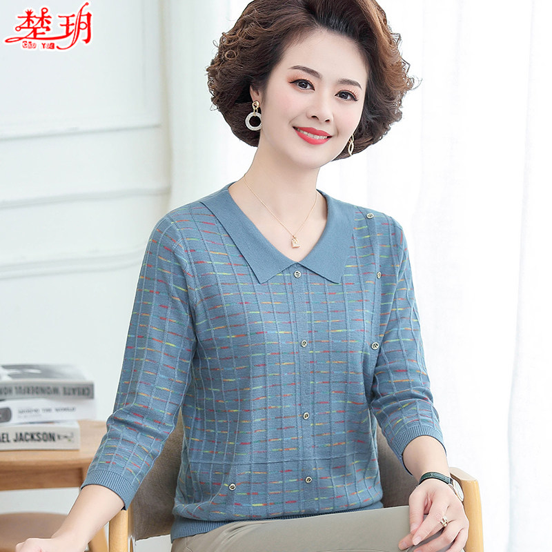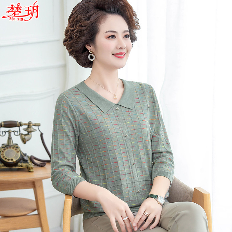 Mom Spring Clothing Foreign Pie Flip-Bottom Jersey 2022 New Middle Aged Woman Spring Autumn Long Sleeve Blouse Blouse Knitwear T Shirt Thin