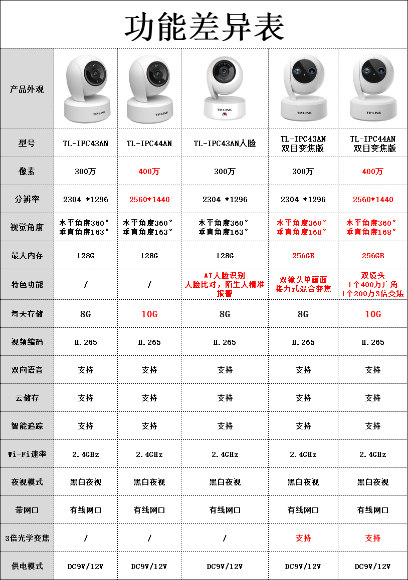 300万无线红外43AN霜白300万无线全綵43AW300万无线红外43AN双目变焦版400万无线红外44AN400万无