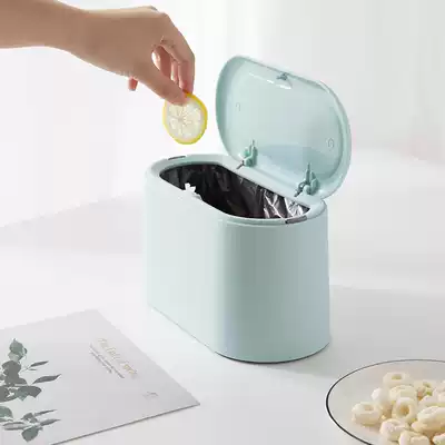 Nordic desktop Trash Can coffee table bedside cute mini storage bucket press Oval small paper basket ins