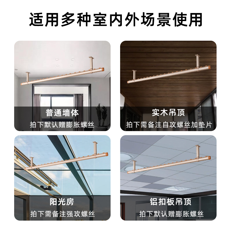 Clothes rail balcony top mount clothes rail fixed windproof drying rack cool hanger home sunbathing is installed by the artifact bag