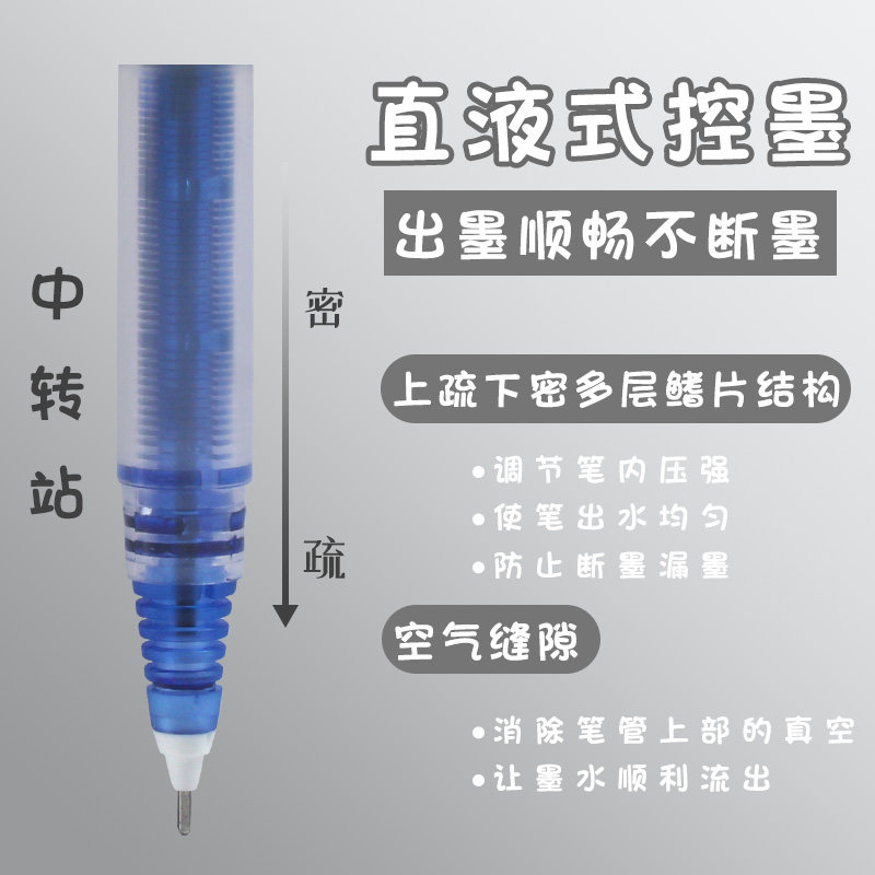 Baixue straight liquid water-based ballpoint pen color neutral pen set 0 5mm for students with quick-drying water-based straight liquid pen large-capacity note-taking special hand account needle tube type signature pen
