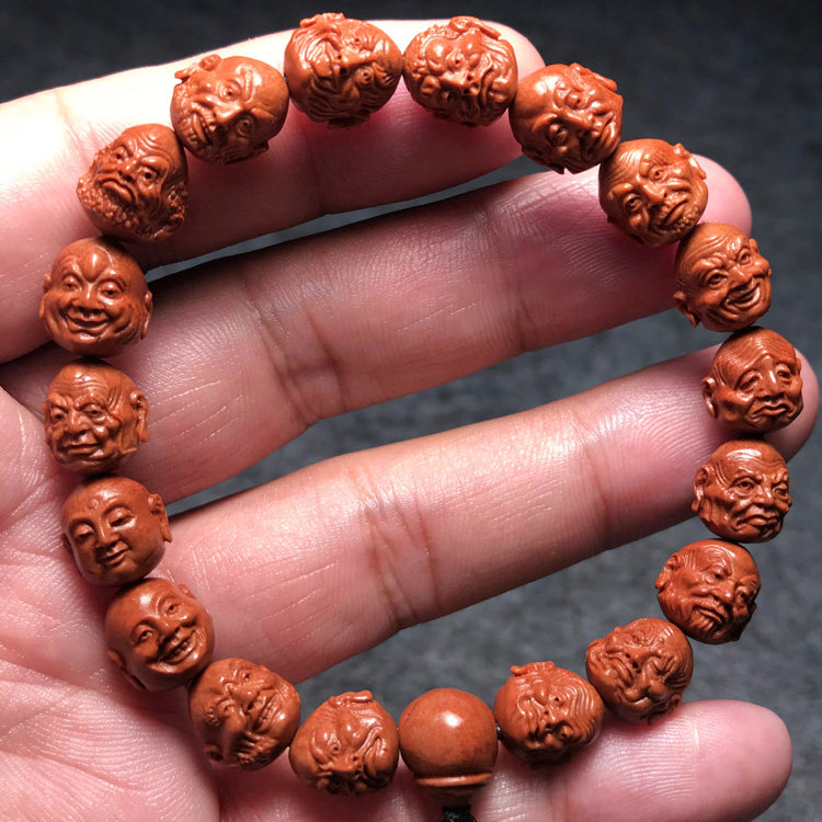 Dragon pattern peach core eighteen 18 arhat bracelets wild small seed peach and walnut carving peach wood writing play Buddha beads hand chisel for men and women