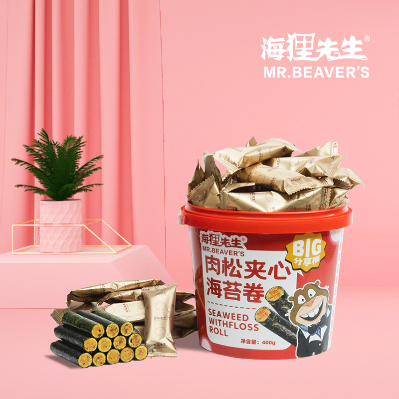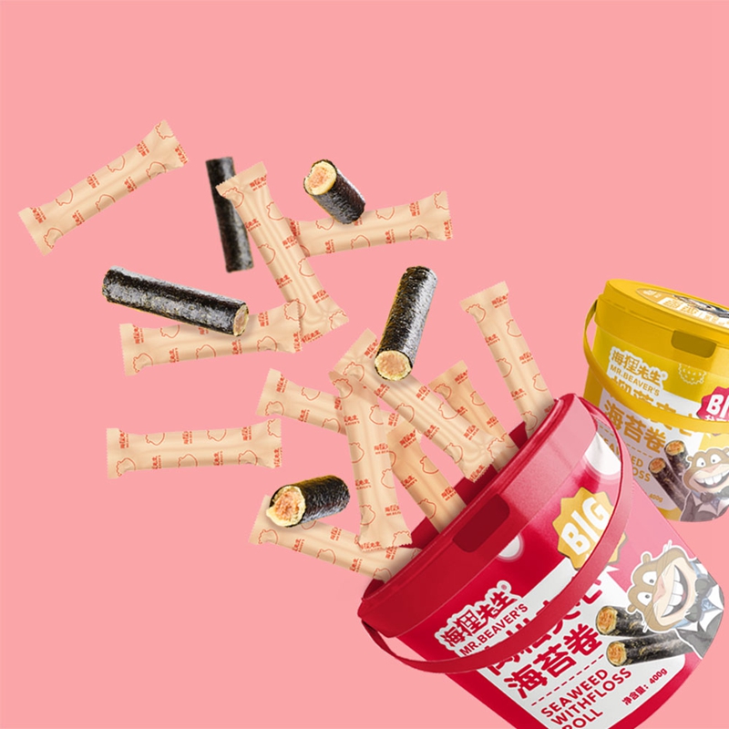 (Recommended by Viya) Mr Beaver seaweed floss roll 400g*1 bucket of small snacks floss seaweed roll sandwich crispy