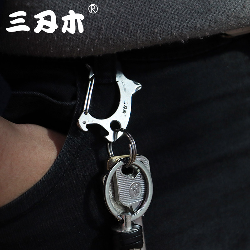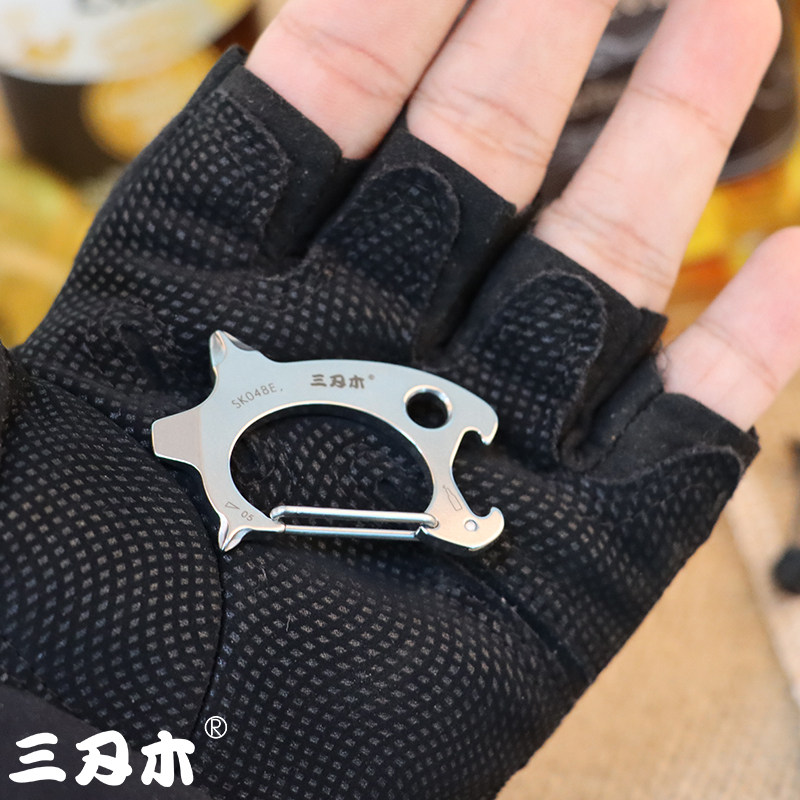 Three-edged wood keychain tiger shark hanging clasp stainless steel multi-function bottle opener screwdriver car keychain