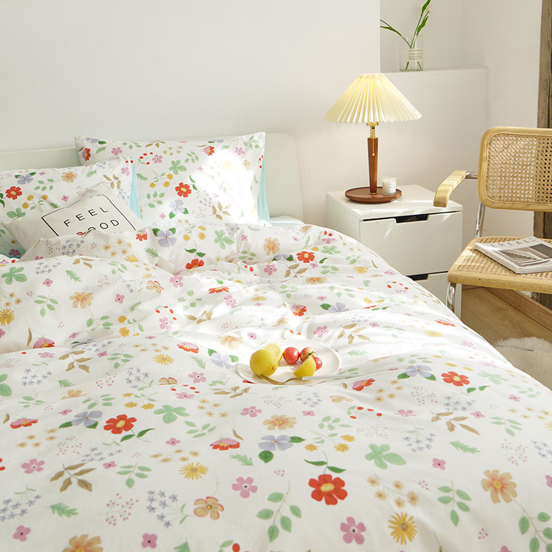 Pastoral style literary pure cotton small fresh floral quilt cover three or four pieces simple girly heart cotton sky blue bed sheet