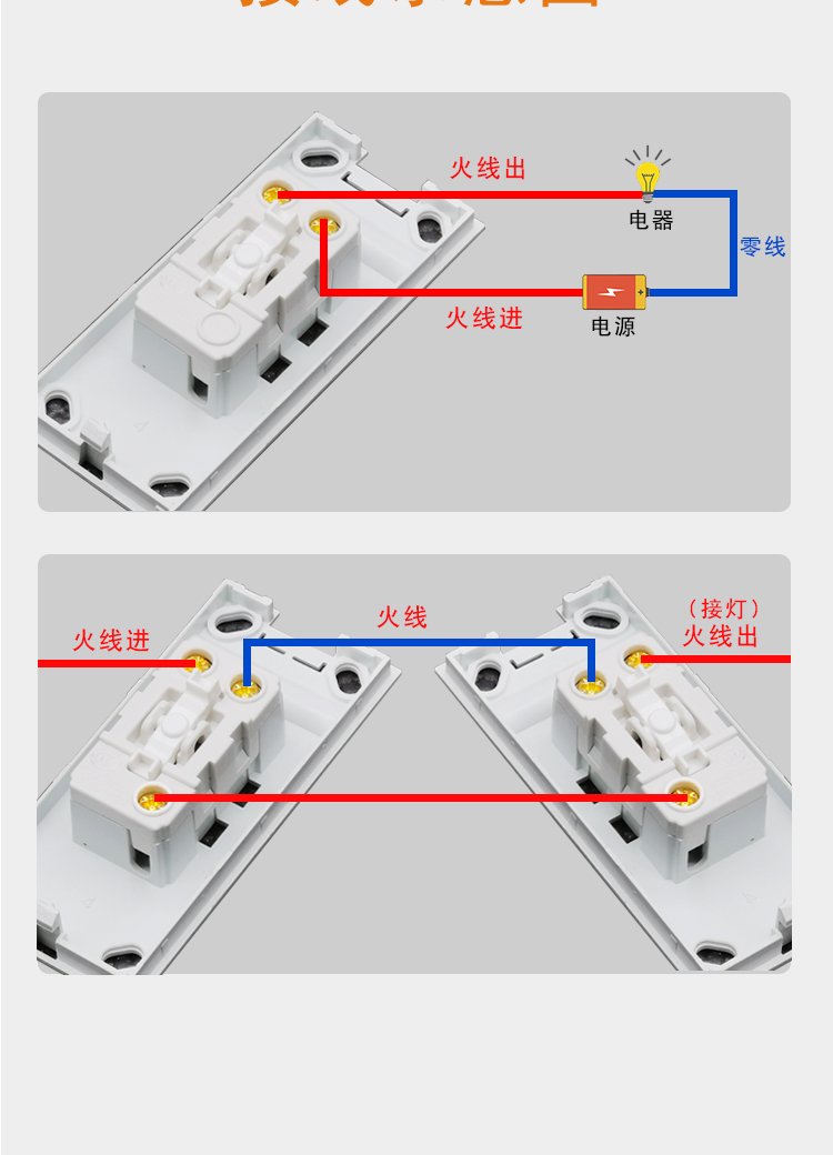 Install bed head switch open single-control wall lamp switch paste button dual control line control old lighting line