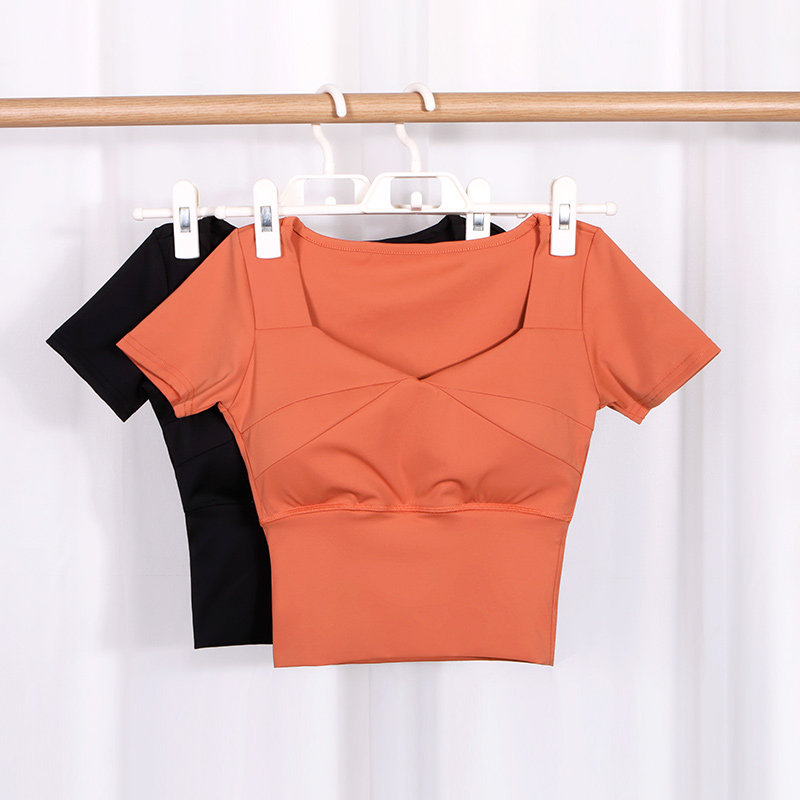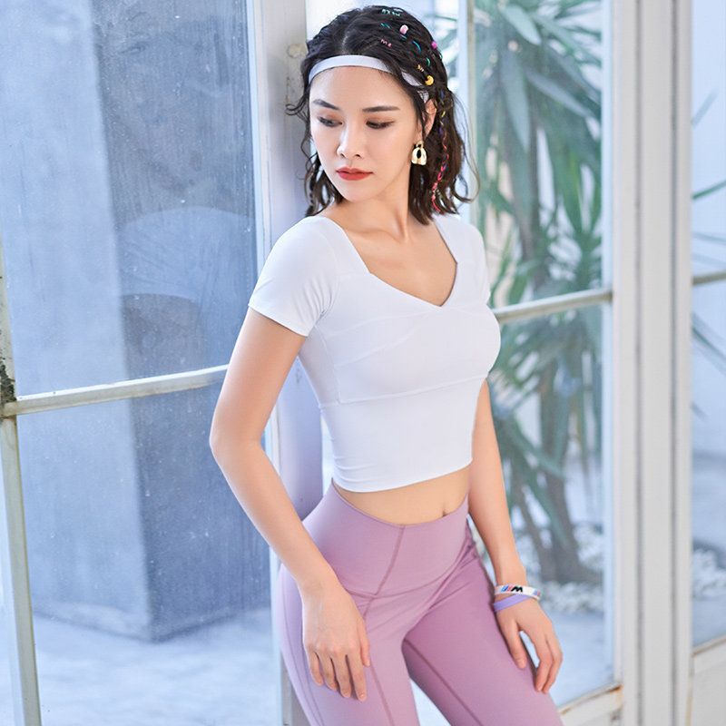 Really strange yoga wear women with chest pad short style sports top thin running tight, quick-dry T-shirt fitness wear summer