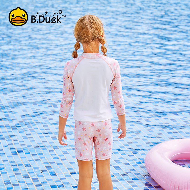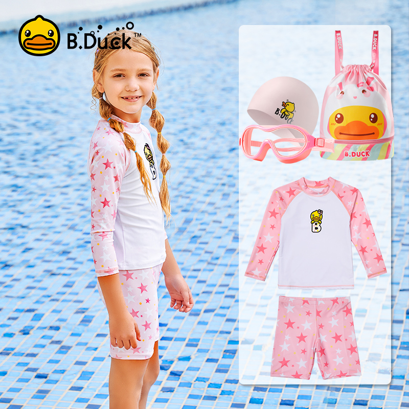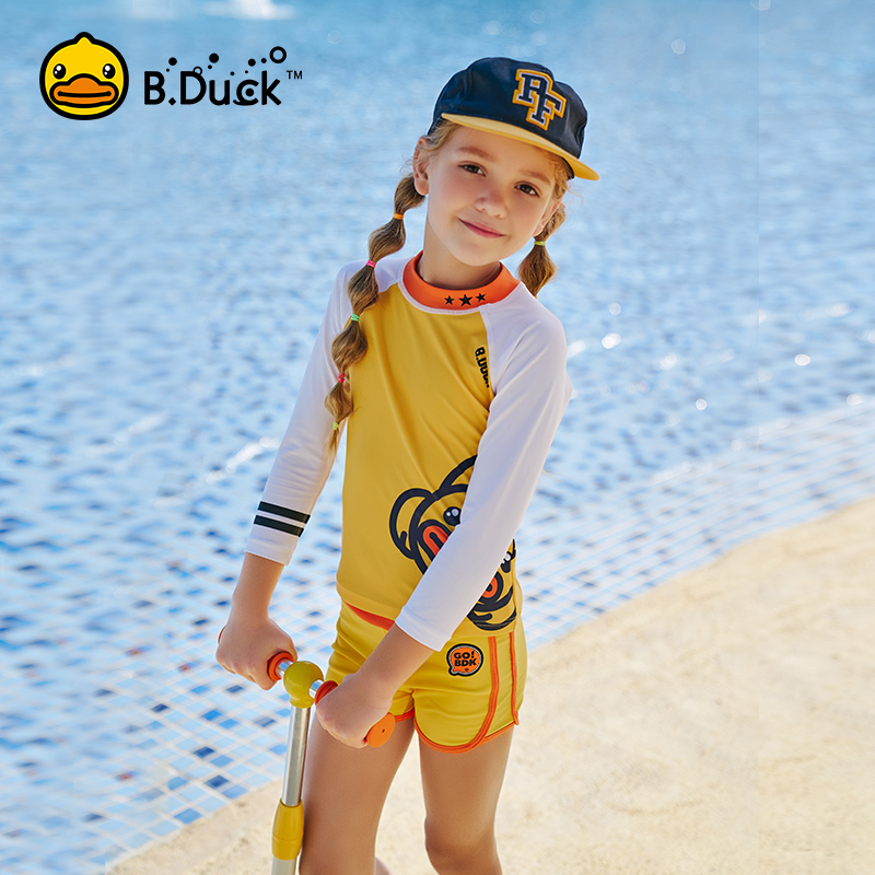 Little yellow duck girl swimsuit children 2021 new split long sleeve swimsuit girl baby Zhongdadong hot spring
