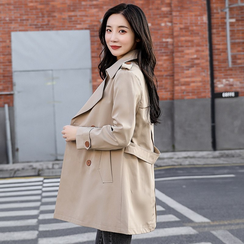 2022 the new tooling Korean version double-row buttoned shoulder badge large turning leader in the middle and long version of the small sub-spring and autumn jacket