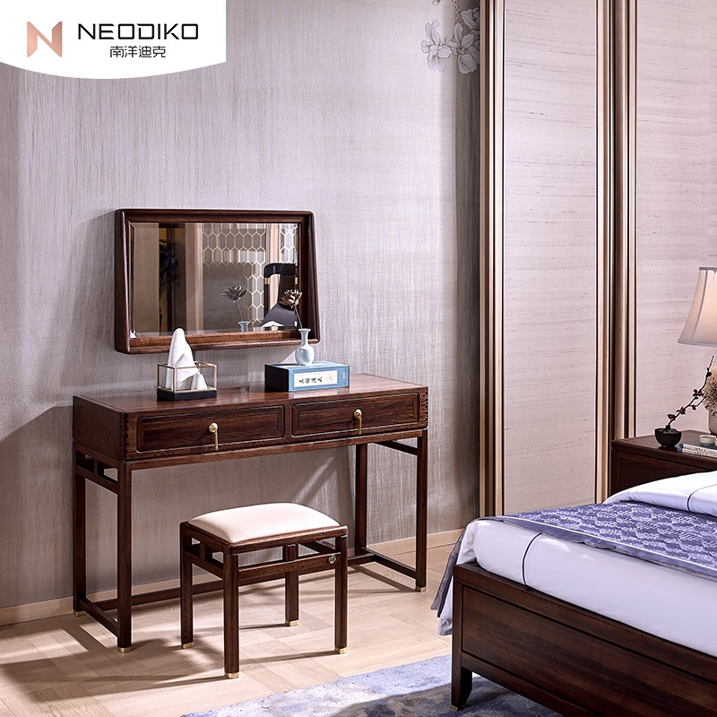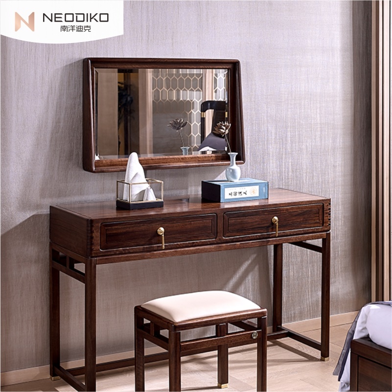 Nanyang dike and gas wood dresser New Chinese solid wood bedroom minimalist make-up bench suit combination