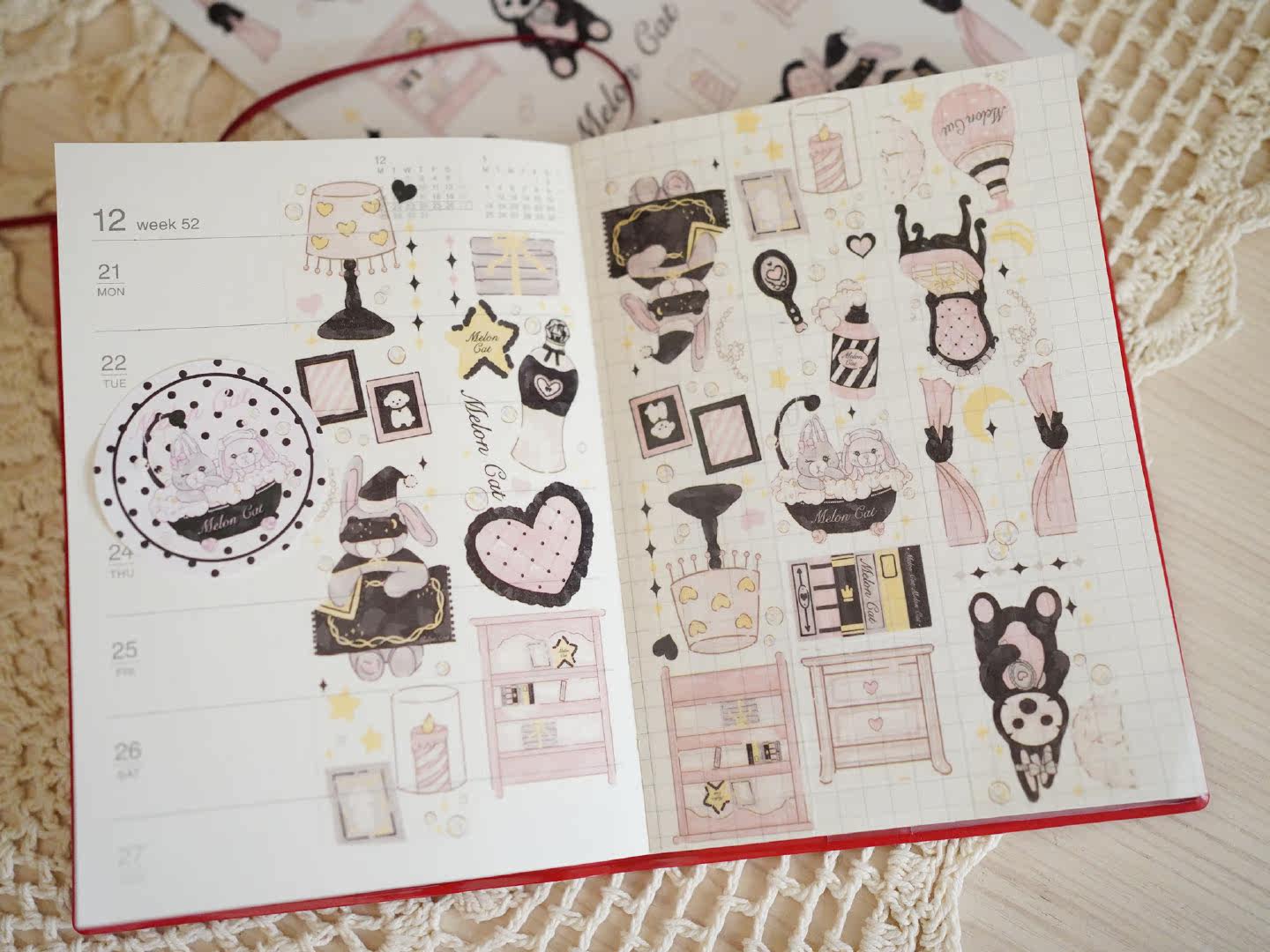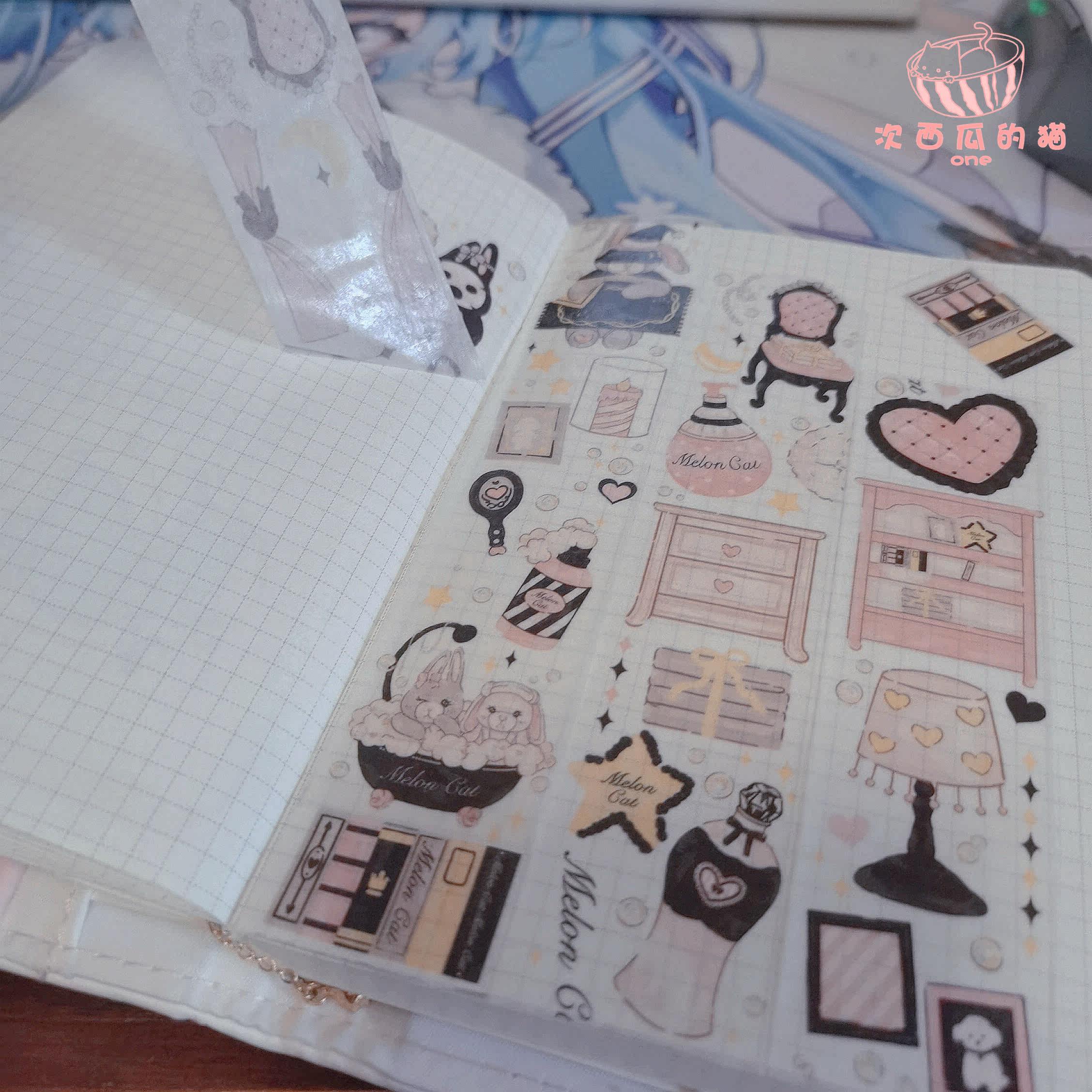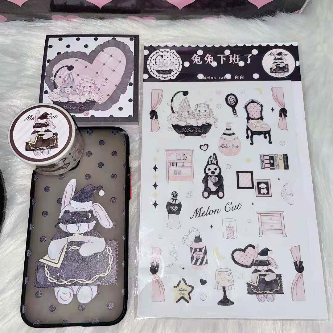 Watermelon cat × white and white rabbit black pink sweet and cute imported washi tape hand account material stickers
