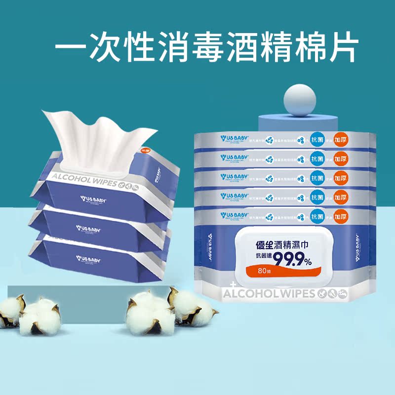 Eugenic alcohol cotton sheet disposable disinfection non-woven large wet wipes mobile phone tableware 75% clean 80 pumping 8 packs