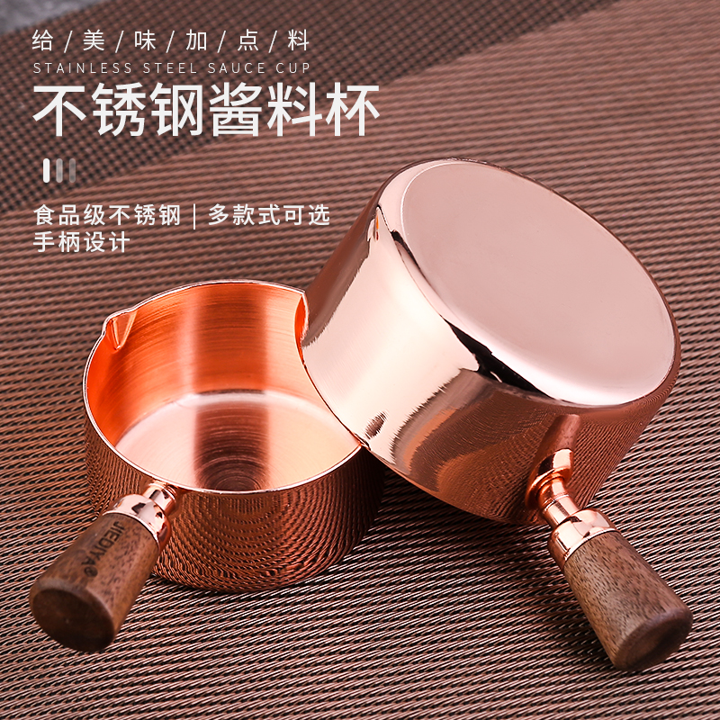 Copper Plated 304 Stainless Steel Juice Flush Sauce Cup Western Dining Wood Handle With Mouth Steak Small Stock Dish Ketchup Seasonings Bowl