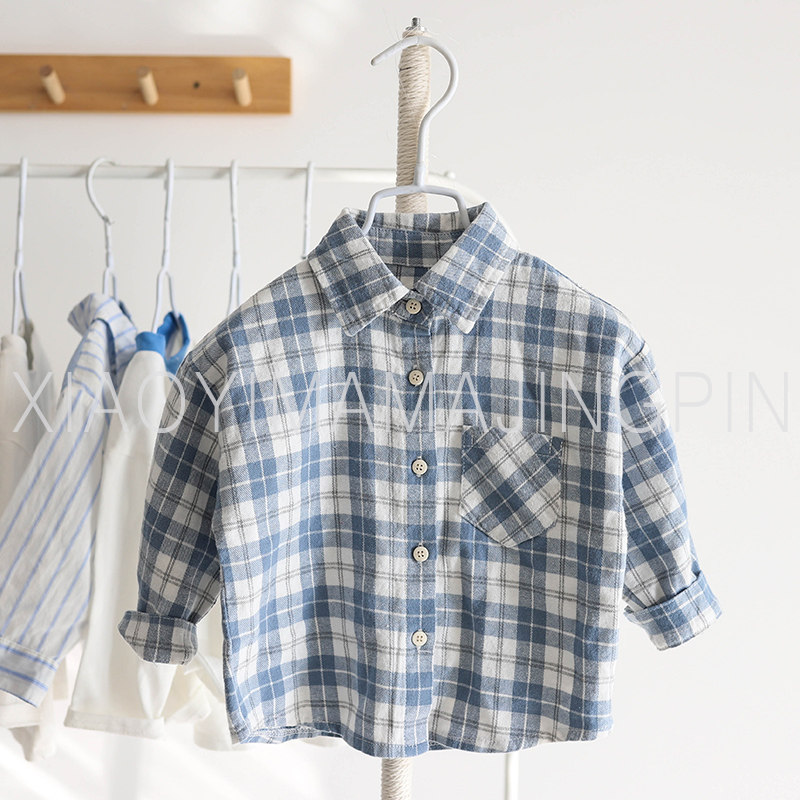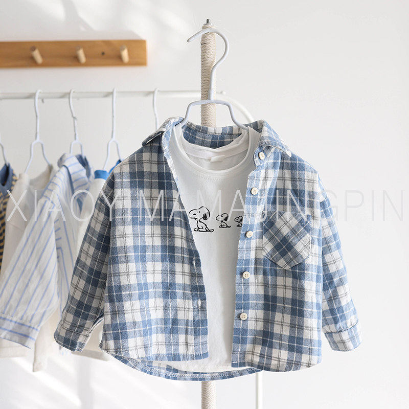Boy Shirt Spring Autumn Tide 2022 New 1-7 Year Old Baby Foreign Pie Plaid Shirt Boy 100 Hitch Shirt Spring Dress