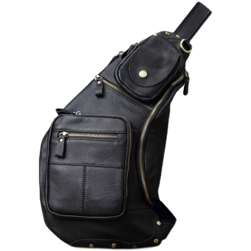 Genuine leather men's chest bag retro soft top layer cowhide casual crossbody bag trendy Korean version single shoulder bag large capacity sports bag