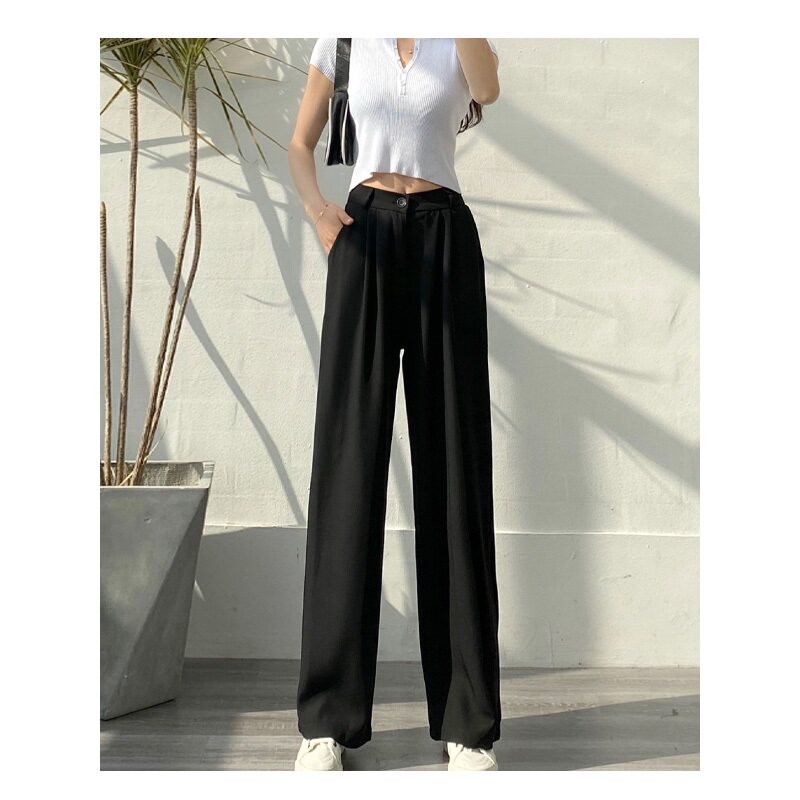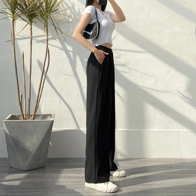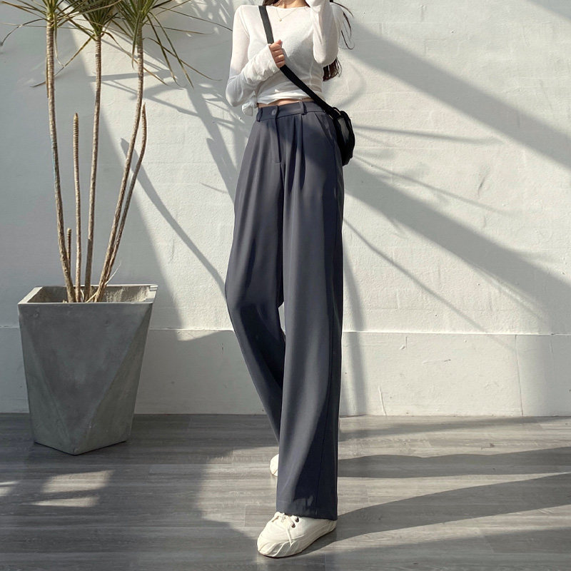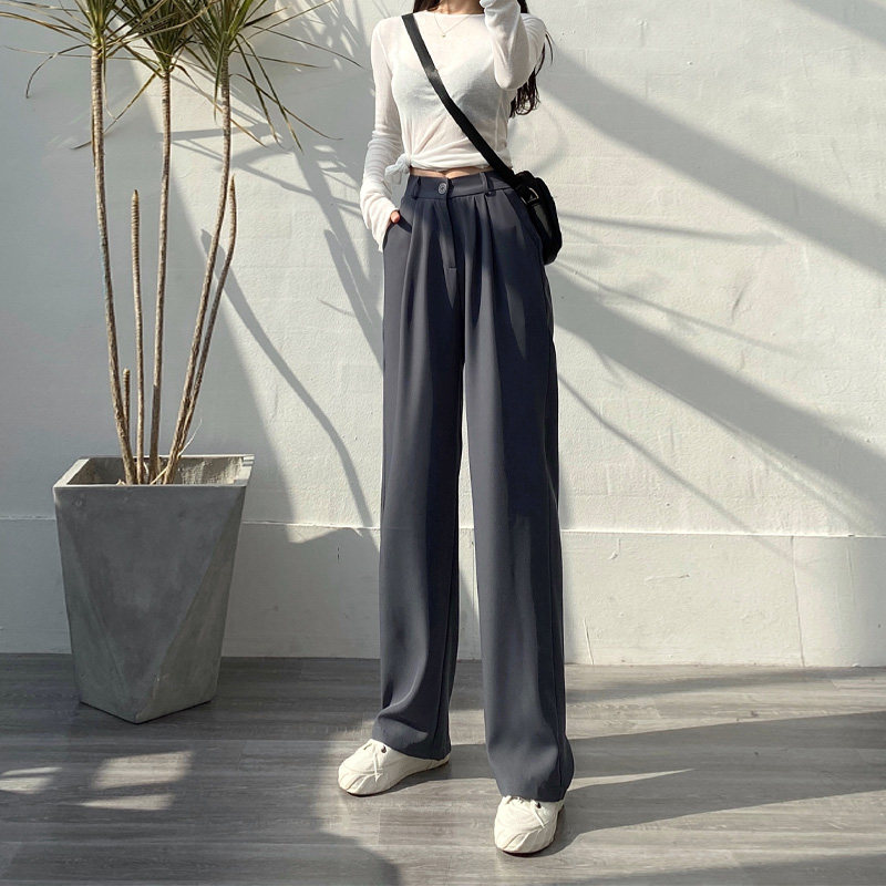 South Korea's new autumn 2022 gray wide-leg pants women's high-waisted drape all-match loose straight-leg mopping suit pants