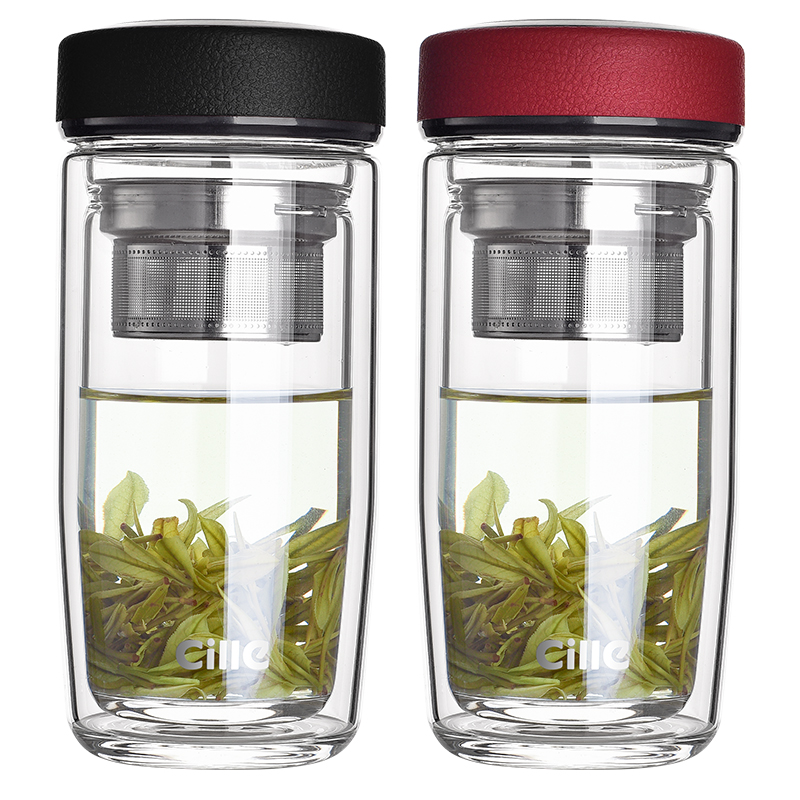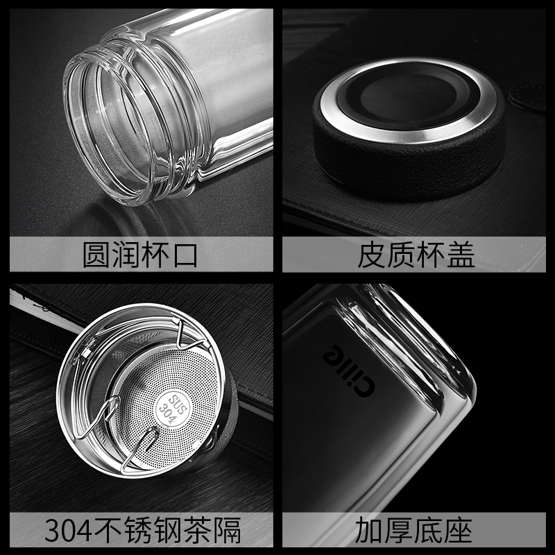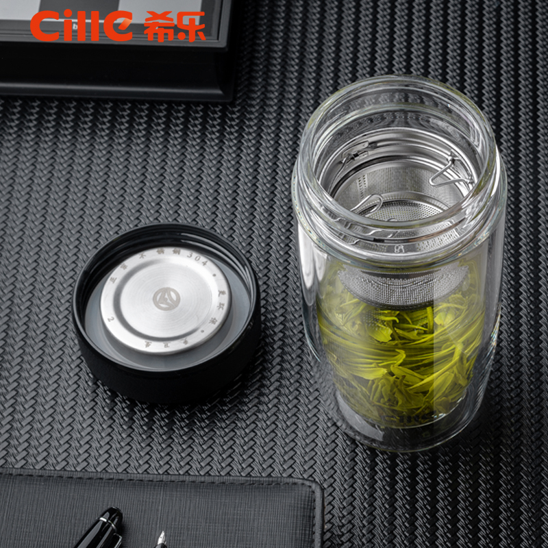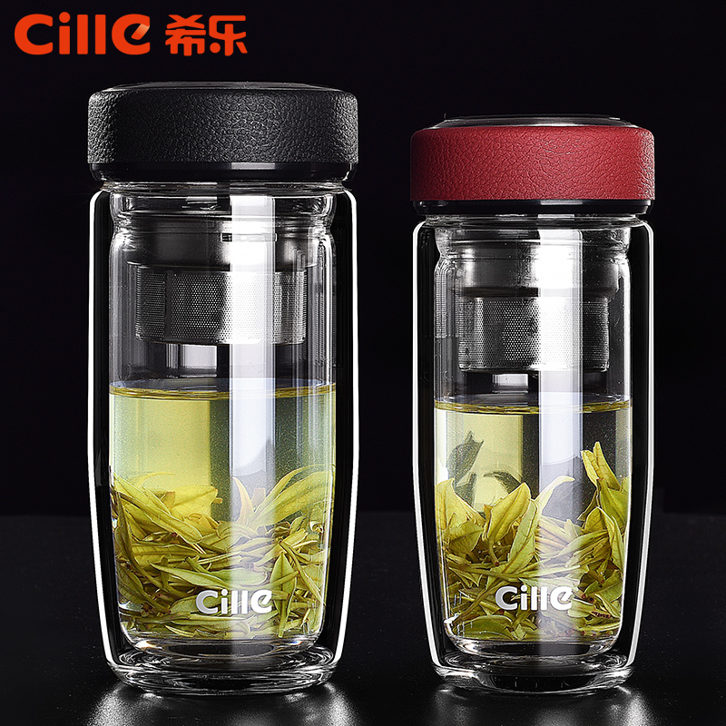 Hile Double Glazed Glass Cup Men And Women Portable Water Cup Insulation With Lid Filter Home Business Office Tea Cup