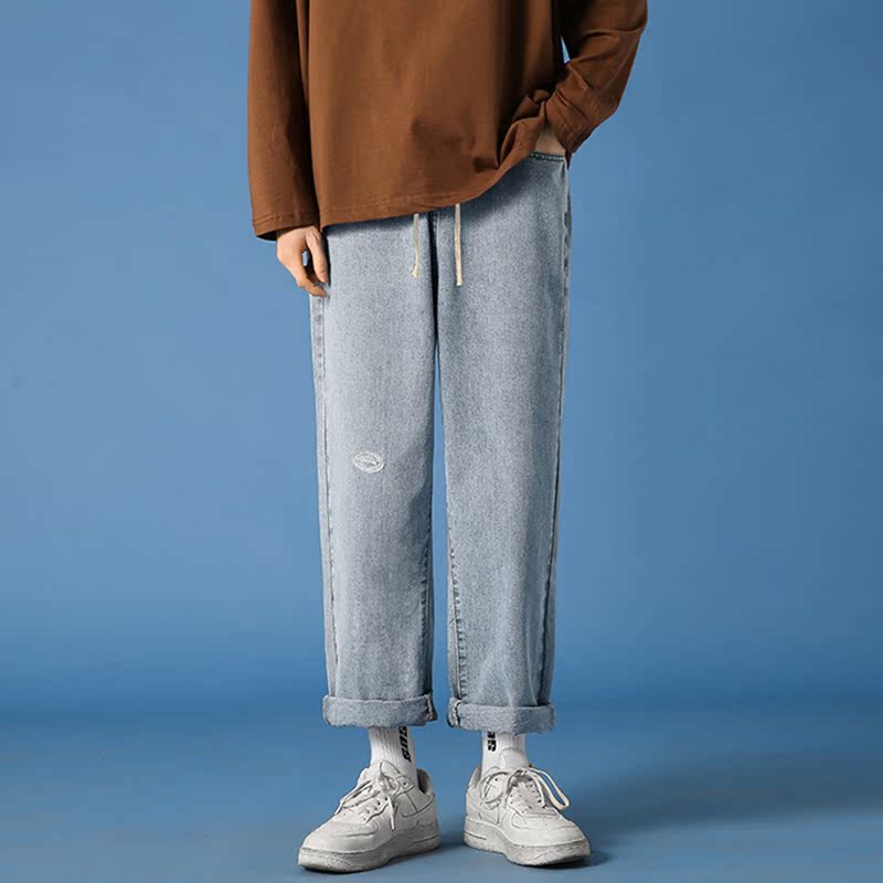Japanese straight jeans female loose Korean student chic Hong Kong flavor wide leg oversize pants thick hip width