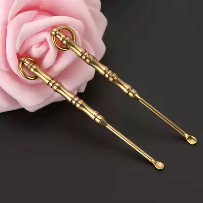 Handmade copper ear digging spoon Brass ear spoon Old-fashioned pure copper adult keychain pendant Pendant ear digging rake tool