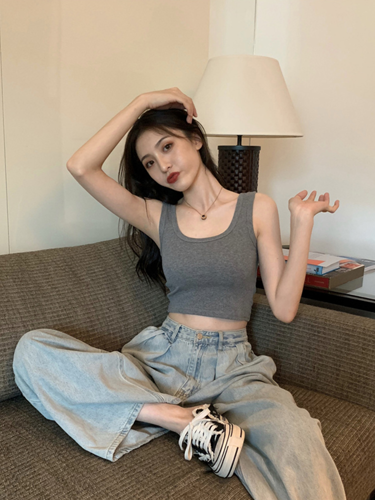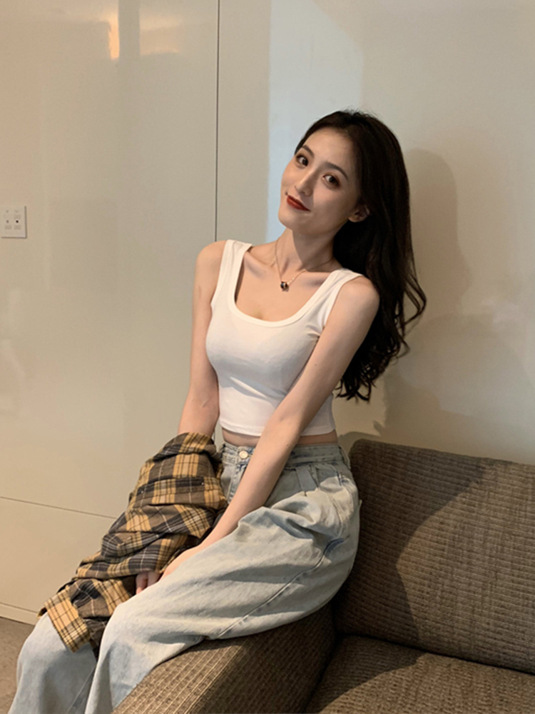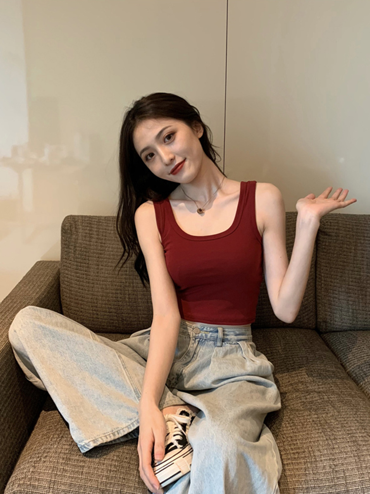 Chao brand early autumn new U neck small camisole women's short black outer wear tight navelless sleeveless underlay