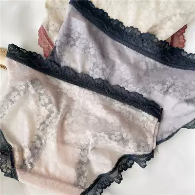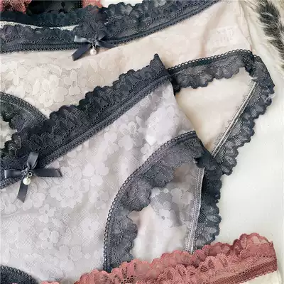 Girls underwear low waist triangle shorts sexy cherry blossom lace transparent mesh cotton crotch hollow comfortable cotton crotch