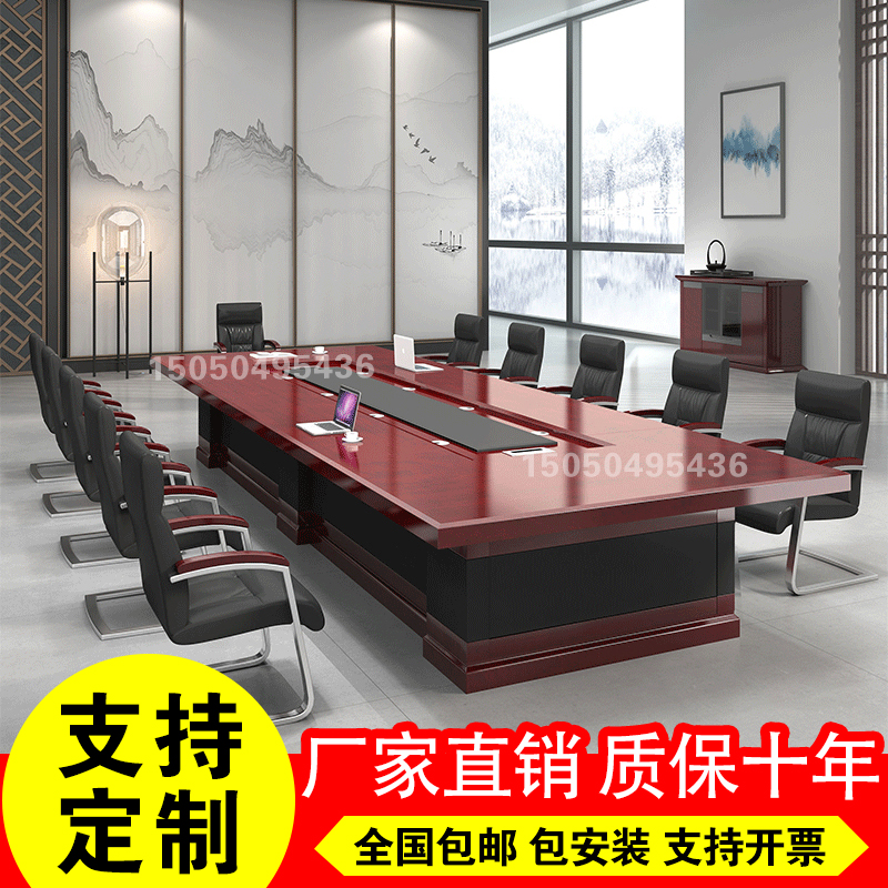 High-end Large Solid Wood Meeting Table Long Table Office Meeting Desk Government Meeting Table And Chairs Combined Rectangular Training Table