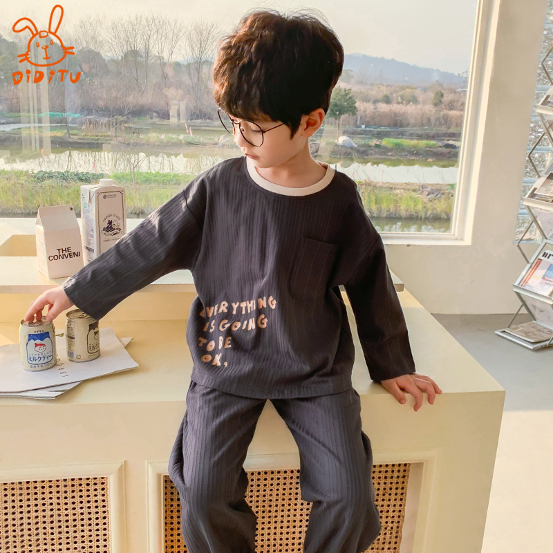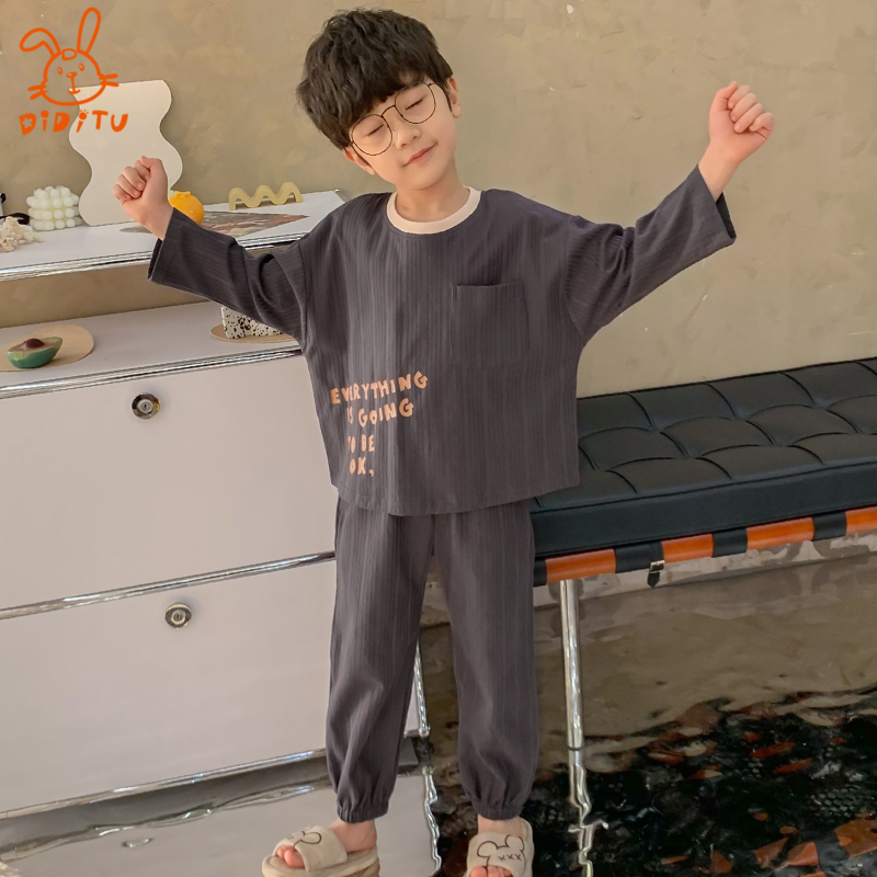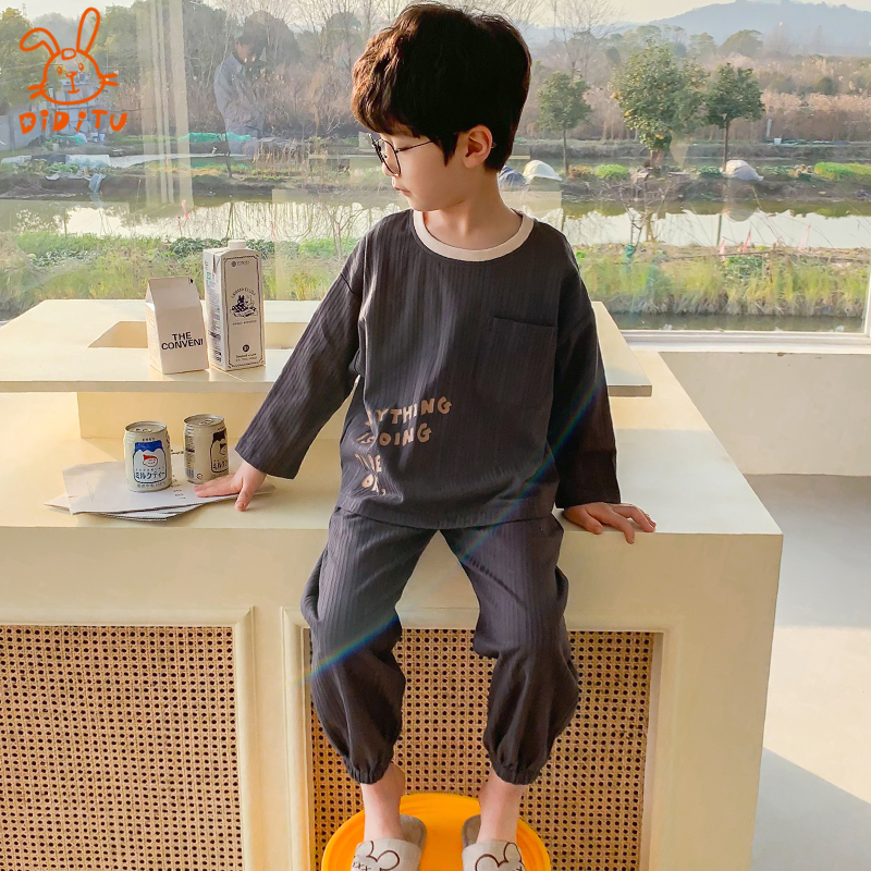 Children's Pyjamas Boy Spring Autumn Season Pure Cotton Long Sleeve Suit Cartoon Boy CUHK Child Thin and Round Collar Home Clothes