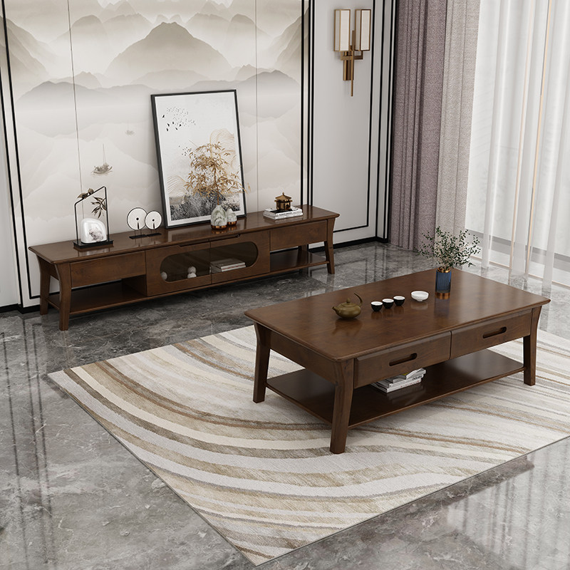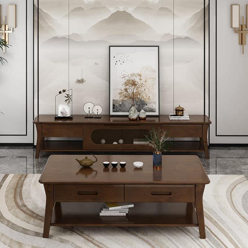 All solid wood TV cabinet coffee table combination living room storage cabinet floor cabinet small apartment TV cabinet Chengdu Cypress furniture