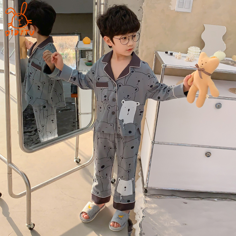 Children's pajamas boys spring and autumn cotton long-sleeved suit cartoon cardigan boy middle and big children thin home clothes