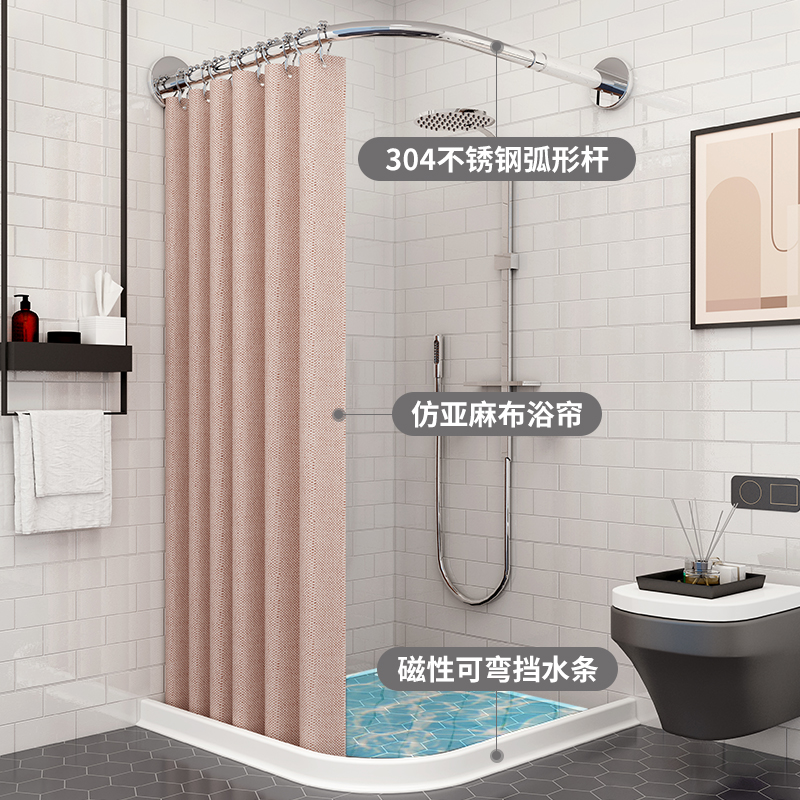 (arched black pole cloth curtain) flax ash (black magnetic shield arched black pole cloth curtain) flax ash (arched black pole cloth curtain) foggy blue (black magnetic blocked arched black pole cloth curtain) foggy haze