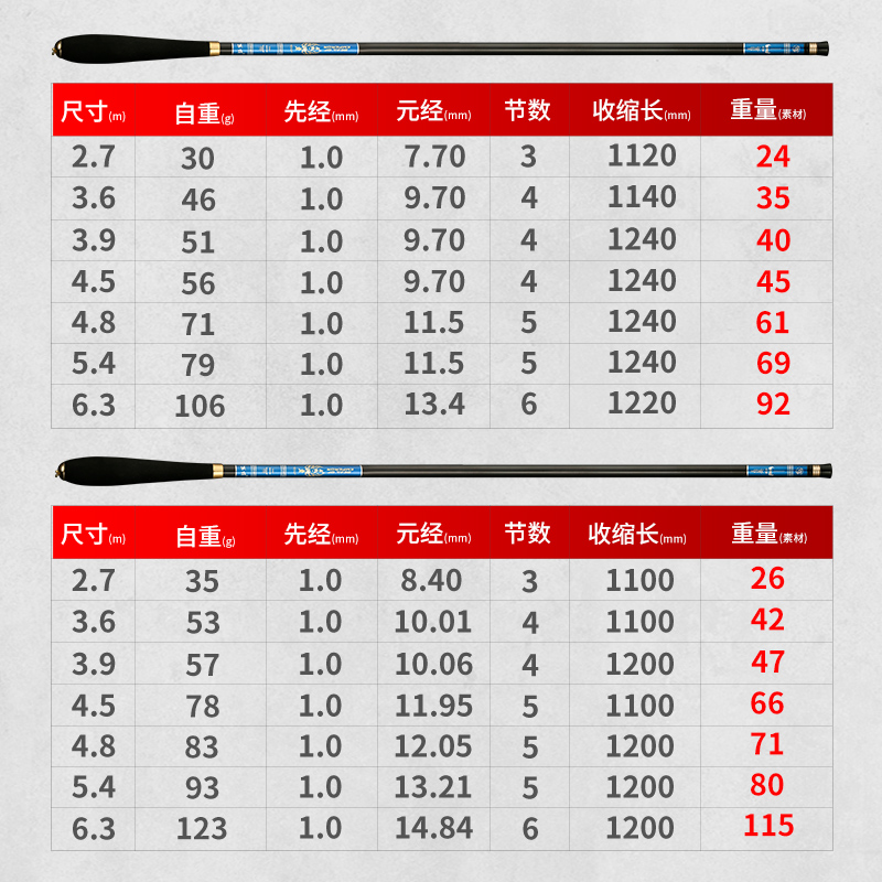 Imported Fishing Rod Hand Lever Super Light Ultra Hard Carbon Table Fishing Rod Super Light Super Ultra Super Hard Carp Rod 28 Tune 19 Tune-Taobao