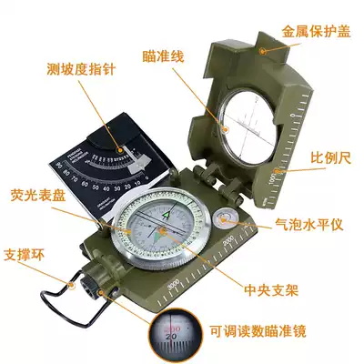 Multifunctional compass outdoor sports high precision compass slope meter professional luminous sports portable finger North needle Army