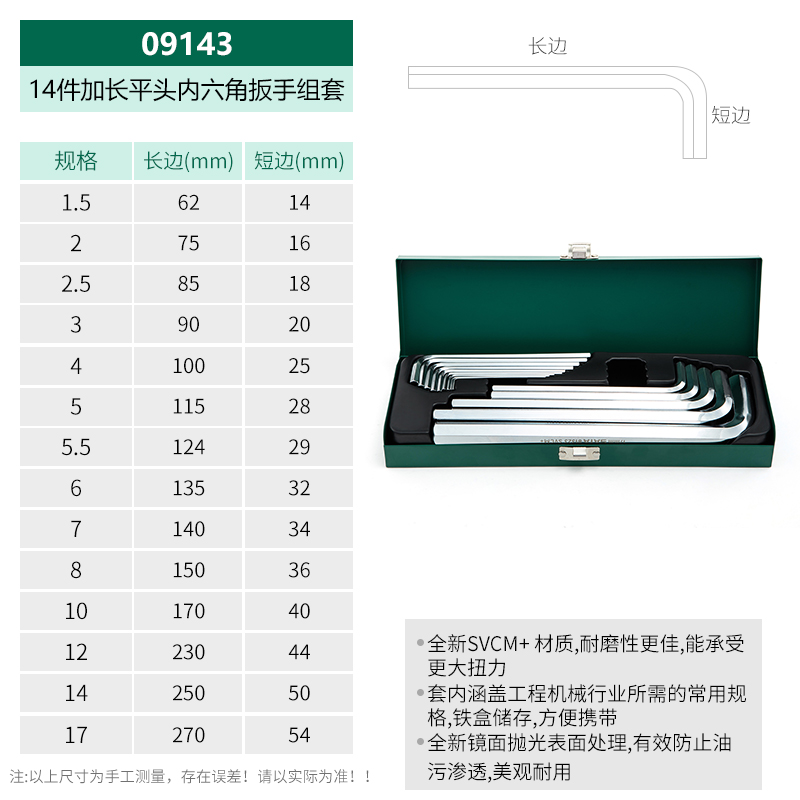 09141 09141 (14 pieces lengthened ball head inner hexagon wrench 09143 (14 pieces lengthened inner hexagon wrench set sleeve)