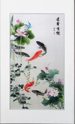 Craftsman-style 4 Silk Su embroidery finished painting more than year by year, handmade Suzhou embroidery painting porch living room decoration hanging painting