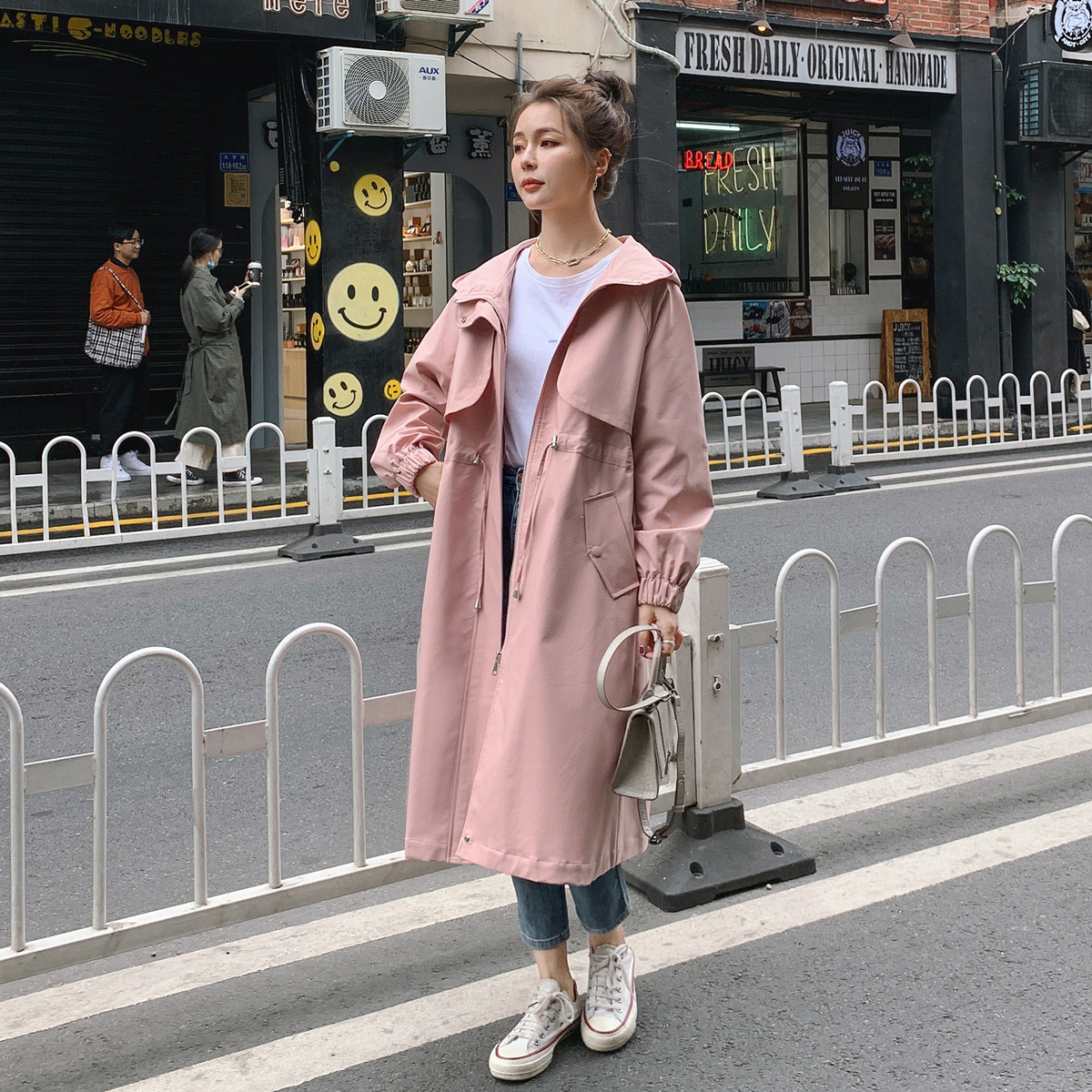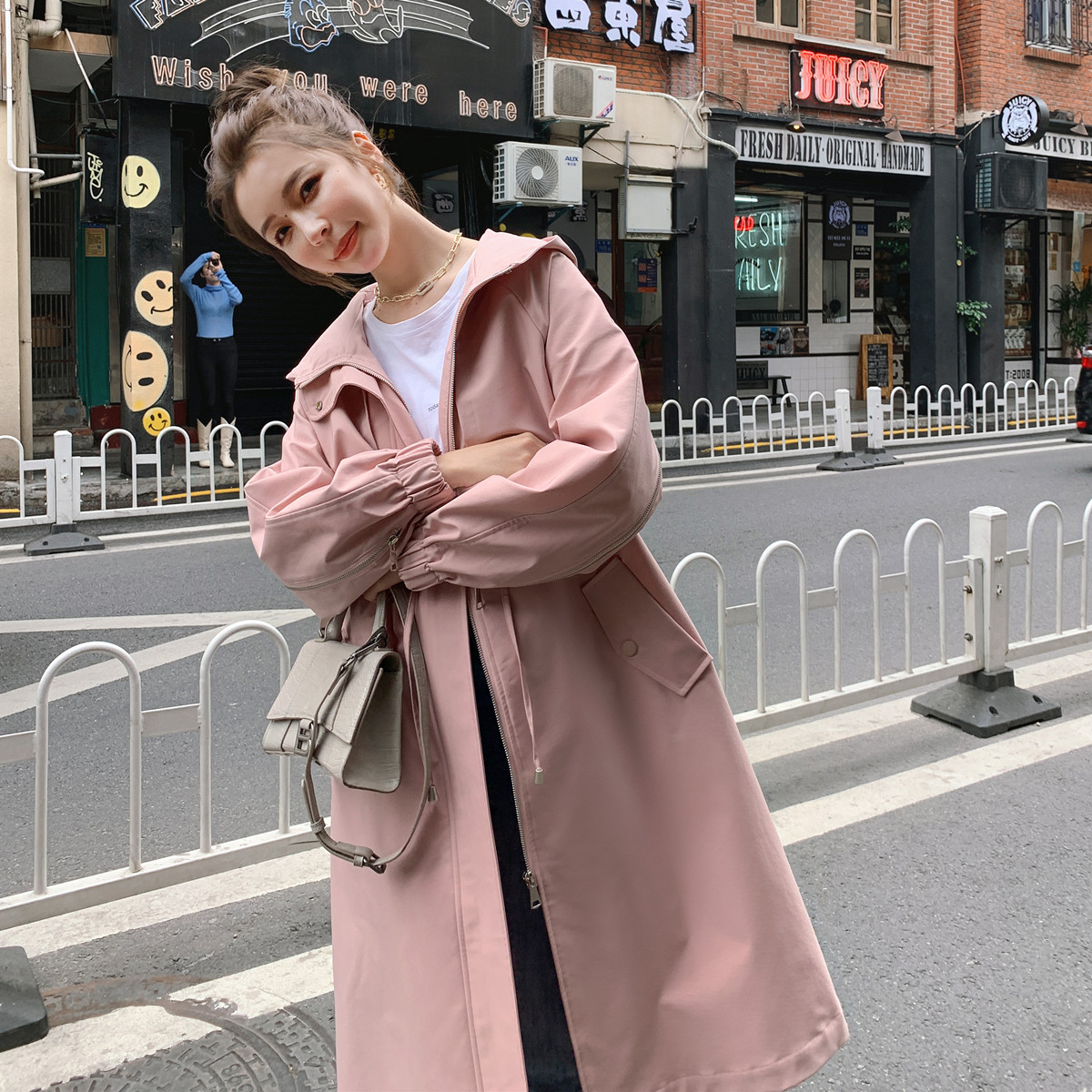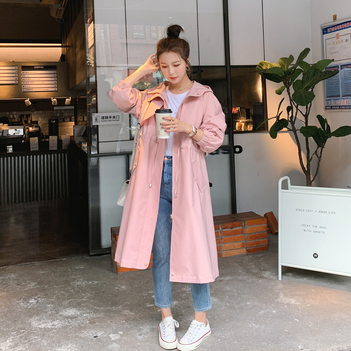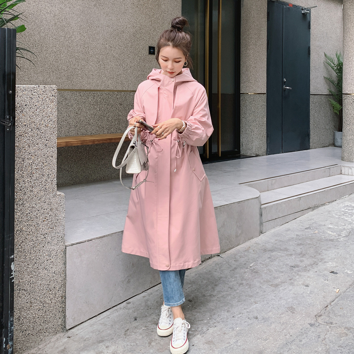 Pink windwear female spring and autumn 2023 new medium - long small small - scale waist temperament popular coat