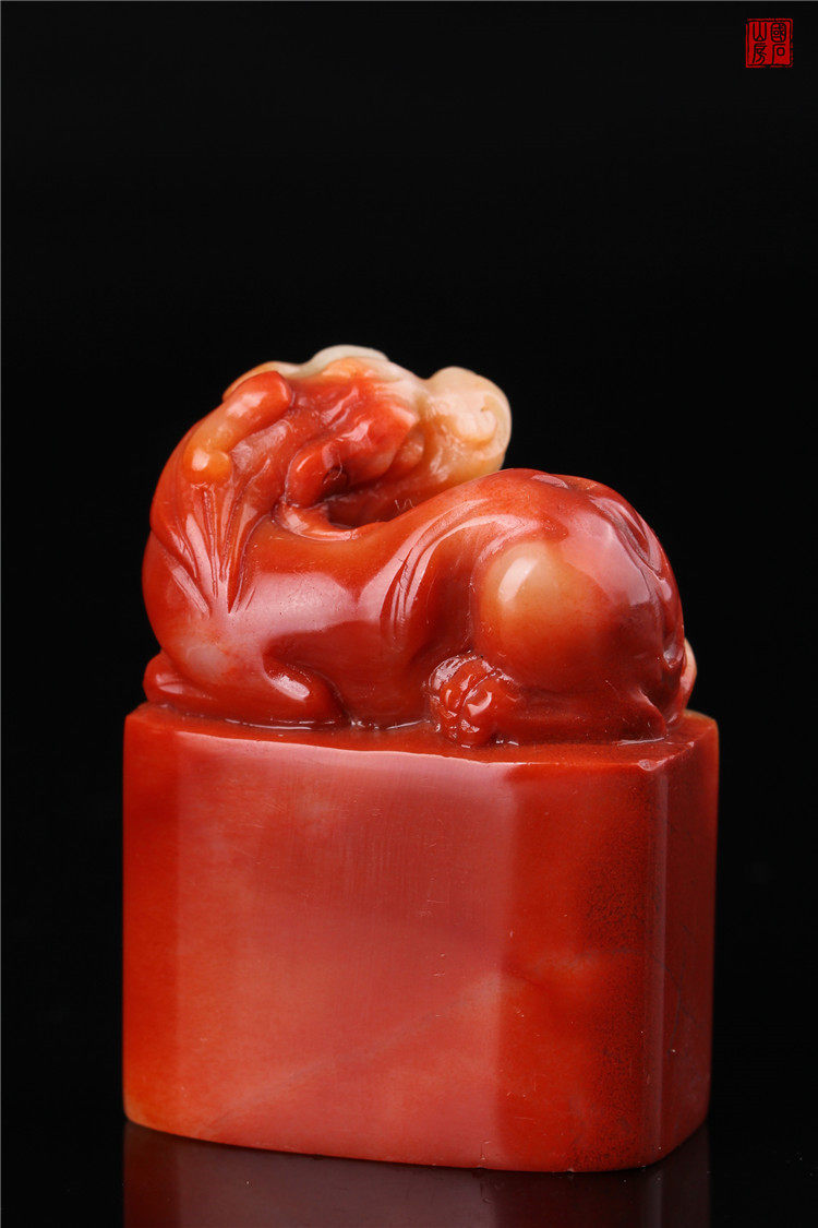 Shoushan Stone Triple Colored Candle Red Dexterous Sculpture Hibiscus Stone Seal Rebeast Seal Engraving A Gift Canon