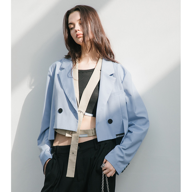 EKCOOKIES original design Xu Yiyang with short front and back long design sense niche suit jacket women short
